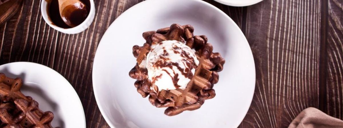 - Create an irresistible dessert by stacking the waffles and layering them with chocolate ganache and a scoop of vanilla ice cream.