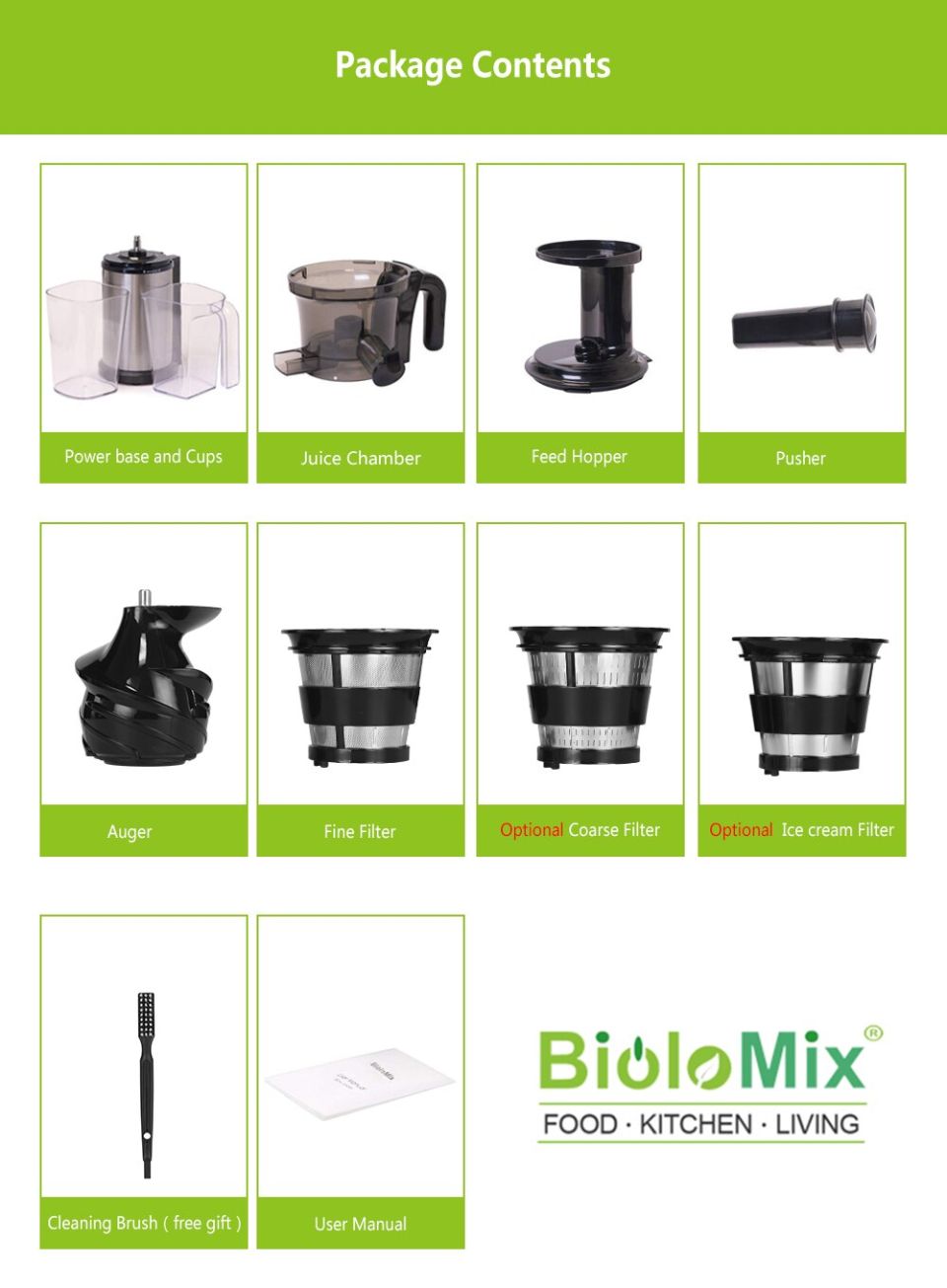 Experience healthier living with the Biolomix 200W Masticating Slow Juicer – your perfect kitchen companion for fresh, nutrient-rich juices. With advanced cold press technology, this compact juicer separates juice from pulp with precision, minimizing oxidation and preserving essential nutrients. The low-speed motor operates quietly and efficiently, making it ideal for everyday use in any modern kitchen. Whether you love fruit juices, smoothies, or homemade ice creams, this versatile juicer helps you enjoy it all, naturally and easily.