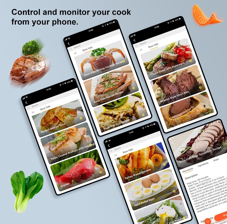 Discover the art of precision cooking with the BioloMix Stainless Steel Sous Vide Cooker With App Control. Whether you’re a seasoned chef or an aspiring home cook, this cutting-edge immersion circulator brings restaurant-quality food to your own kitchen. With its smart app control, precise temperature and timer settings, and IPX7 waterproof design, the BioloMix Sous Vide Cooker is the ultimate tool for creating delicious and nutritious meals with ease. Cook Like a Pro with Precision Temperature Control Experience the power of precise cooking with the BioloMix 5th Generation Sous Vide Cooker. With an impressive temperature accuracy of ±0.1°C, you can achieve consistent results every time. The intelligent wide range of temperature (0-90°C) and time control (up to 59:59) allows you to cook a variety of foods to perfection. From succulent steaks to tender fish, juicy chicken to flavorful vegetables, the BioloMix Sous Vide Cooker ensures that your food maintains its best taste, nutrients, and vitamins. Two Operation Methods for Ultimate Convenience The BioloMix Sous Vide Cooker offers two convenient operation methods to suit your preference. Use the touch button with 4 presets (Steak, Fish, Chicken, Vegetables) for quick and easy cooking. Alternatively, take control of your sous vide experience by remotely operating the cooker through the “Tuya smart” app on your mobile device. Simply download the app from Google Play or the App Store, connect to your device via Wi-Fi, and enjoy the freedom to control and monitor your cooking from anywhere. Efficient 360° Fast Heat Circulation With its advanced 360° heat circulation stainless steel pump, the BioloMix Stainless Steel Sous Vide Cooker With App Control ensures fast and efficient heat transfer. This innovative design guarantees that the water temperature remains constant throughout the cooking process, allowing your food to cook evenly without the risk of overcooking or undercooking. Say goodbye to dry and flavorless meals and hello to perfectly cooked dishes bursting with flavor. IPX7 Waterproof Certification for Durability and Safety The BioloMix Stainless Steel Sous Vide Cooker With App Control is IPX7 waterproof certified, providing you with peace of mind and long-lasting durability. The waterproof design eliminates the risk of steam entering the internal components, ensuring the safety of both the device and your kitchen. Cook with confidence, knowing that the BioloMix Sous Vide Cooker is designed to withstand the rigors of everyday use. User-Friendly Design with Delay Start Function Experience hassle-free cooking with the user-friendly design of the BioloMix Stainless Steel Sous Vide Cooker With App Control The big LCD display makes it easy to read and navigate, while the “Delay Start” function adds convenience to your culinary adventures. Simply attach the precision cooker to your container, add water, place your ingredients in a sealed bag, and press the power button for 3 seconds to start cooking. The sous vide cooker’s timer and precise temperature control allow you to step away and relax while your food cooks to perfection.You must be logged in to post a review.